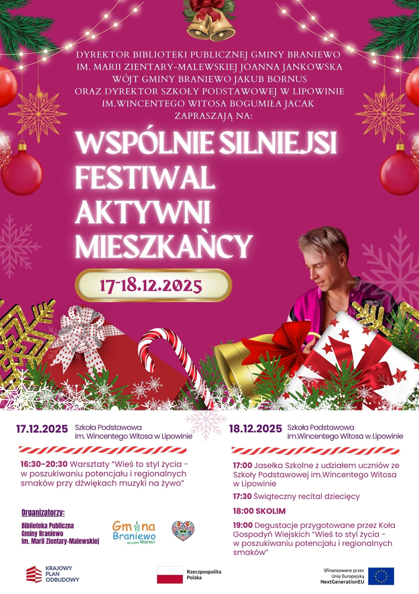 W Lipowinie już 17-18 grudnia 2025 r. mieszkańcy spotkają się podczas świątecznej edycji festiwalu „Wspólnie Silniejsi – Aktywni Mieszkańcy”. Będzie to wydarzenie podkreślające znaczenie współpracy i lokalnej wspólnoty – wyjątkowy program pełen tradycji, muzyki, warsztatów i świątecznych smaków.