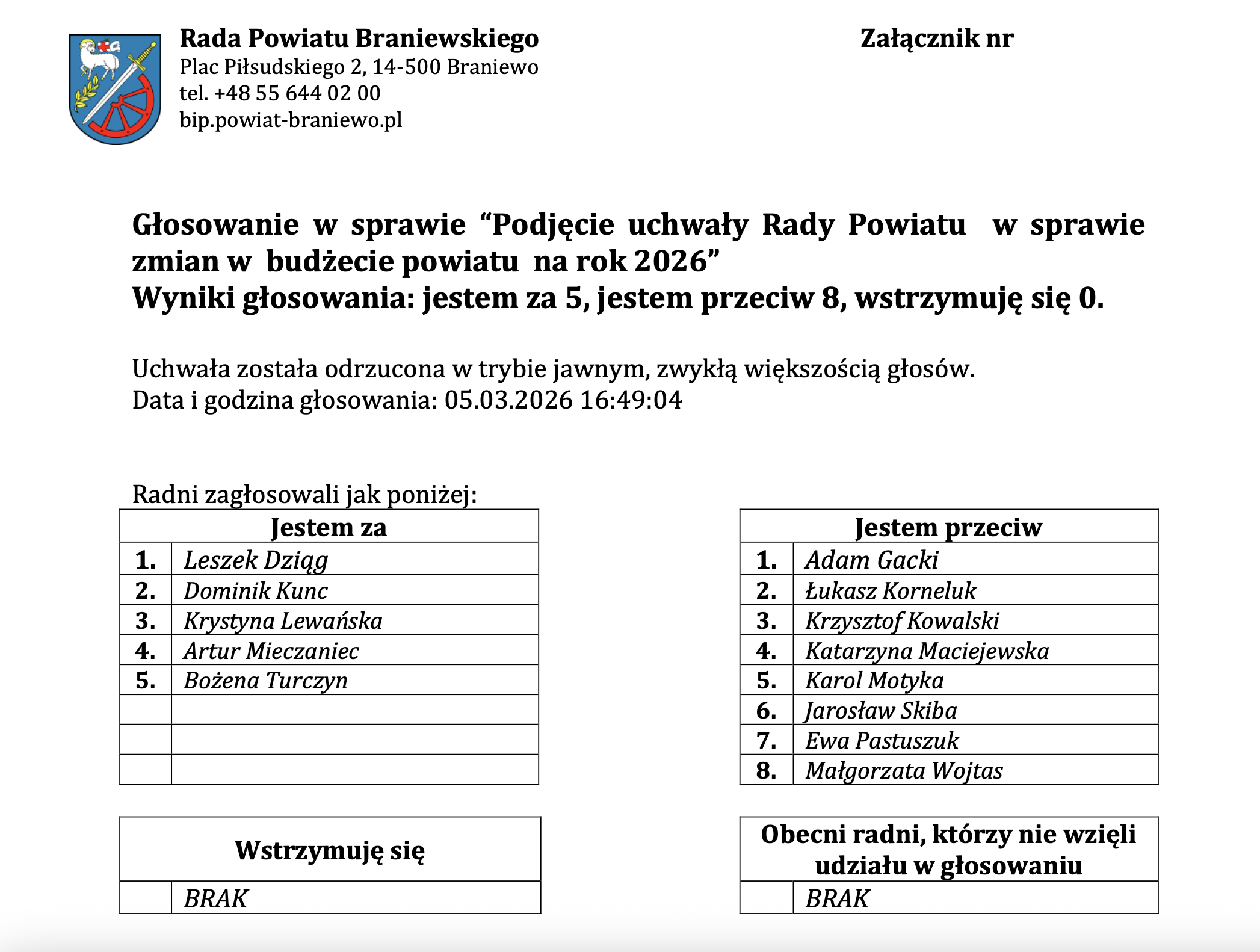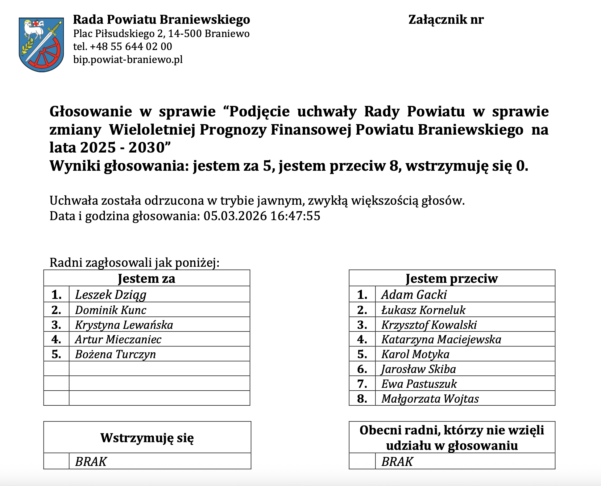 Zarząd Powiatu Braniewskiego: