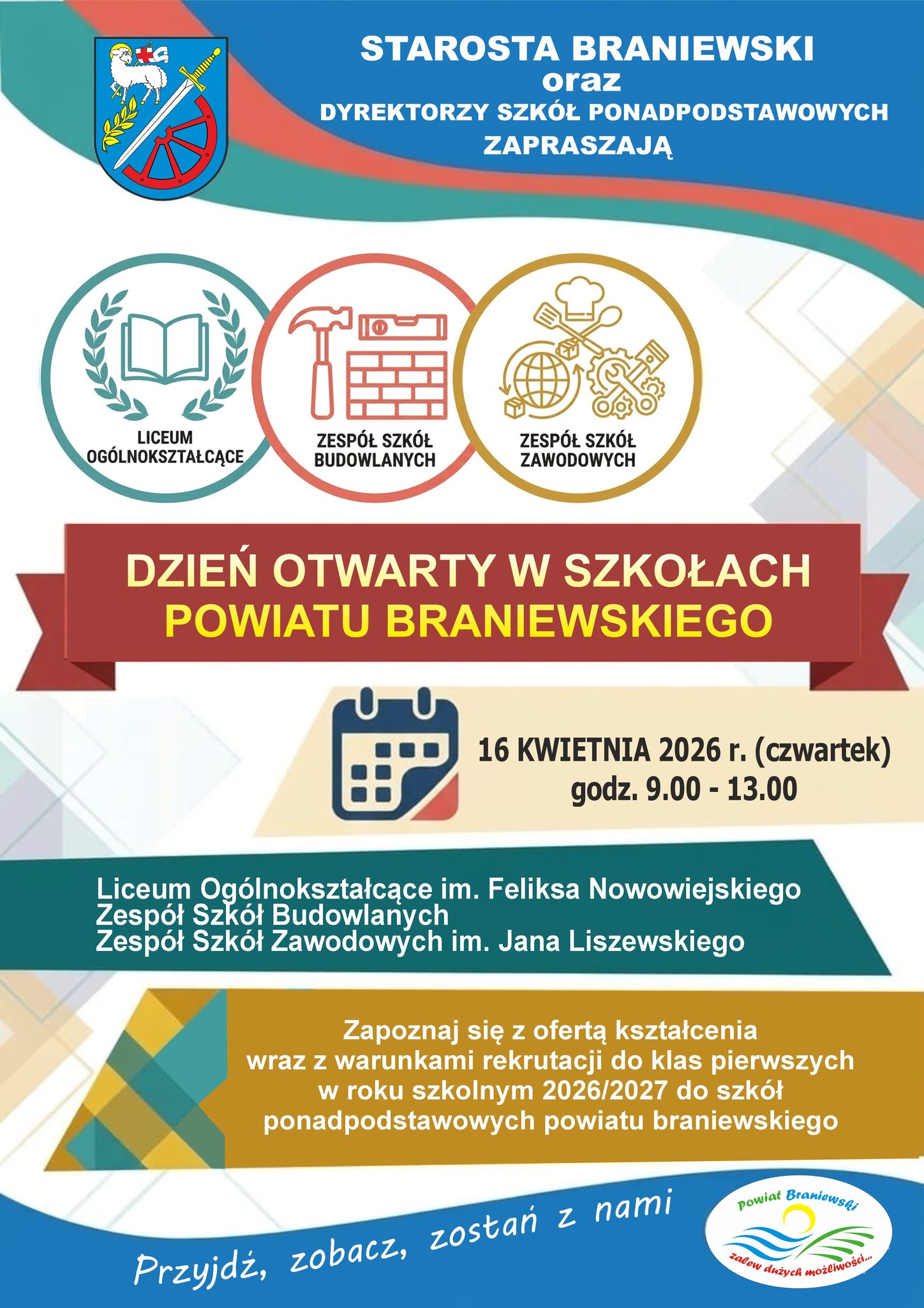 Starosta braniewski Leszek Dziąg, dyrektorzy i uczniowie szkół ponadpodstawowych w Braniewie zapraszają uczniów klas ósmych oraz ich rodziców na wyjątkowe wydarzenie edukacyjne – Dzień Otwarty szkół powiatu braniewskiego.