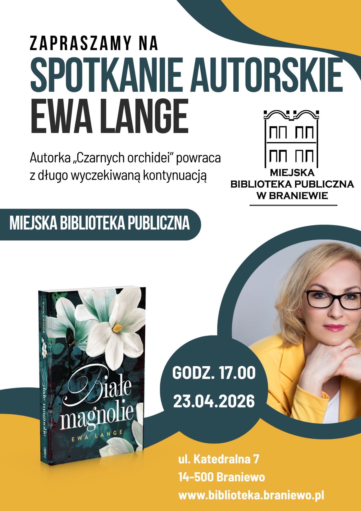 Z okazji Światowego Dnia Książki i Praw Autorskich, 23 kwietnia o godz. 17:00, Miejska Biblioteka Publiczna w Braniewie zaprasza mieszkańców na wyjątkowe wydarzenie literackie. Gościem spotkania będzie Ewa Lange – autorka poruszających powieści „Czarne orchidee” oraz „Białe magnolie”.